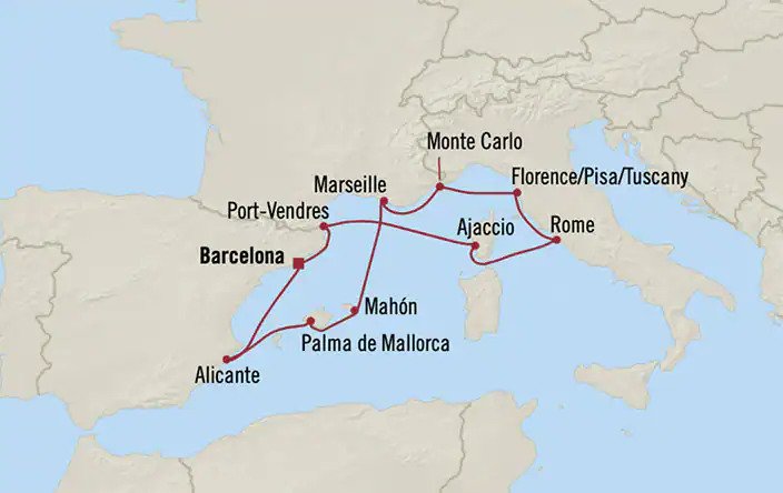 10 Night Cruise 9 Old Ports (B, A, PdM, M, M, MC, L/L, C, A) 8 Beef Dinners 8 Towels 7 Tours Escorted (Not Alicante or Port-Vendres) 6 Seat Sharing Dining Tables 5 Items Laundered 5 Cheese Omelettes 5 Production Shows 4 Face Flannels 4 New Berths (WTC, PdM, M & L/L) 4 New Towns (AeP, SPdV, V & C) 3 Enrichment Lectures 3 Jacuzzis 2 Eggs Benedict Breakfasts 2 Complimentary Transfers 2 Continental Breakfasts 2 Art Lectures (Michelangelo & Leonardo) 2 Flights (BA $517 & $166) 2 Old Towns (Soller & Rome) 2 Lamb Dinners 1 Full English Breakfast 1 History Lecture (Med) 1 New Port (Port-Vendres) 1 Salt Water Pool 1 Tender Port (Port-Vendres) 0 Sea Days